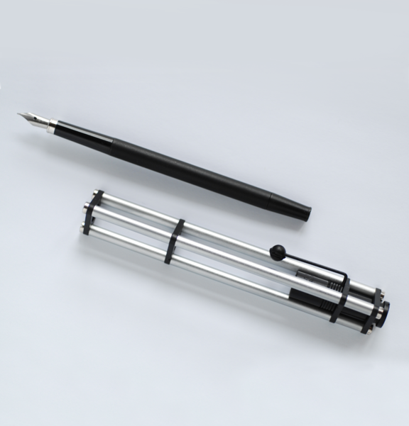 The BIG version of the Revolution. It is the fountain pen for collectors and business people who want to distinguish themselves in elegance and innovation. An instrument with a strong visual impact designed to be intentionally impressive and of character. Made of brass and ABS, it is available in three variants: chrome and black.